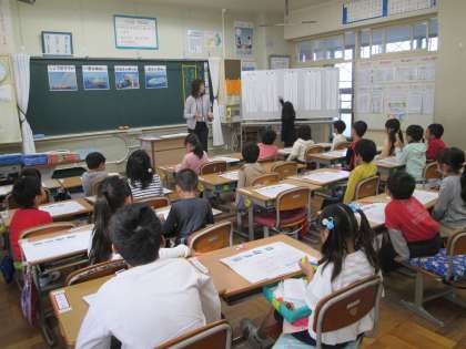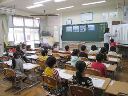 1年2組の授業は,国語です。教科書の「いろいろなふね」を学習しました。