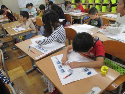 今日は,教科書に書かれている船がどのような船なのか文章を読み取って,客船・フェリーボート・漁船・消防艇と文章を分けました。