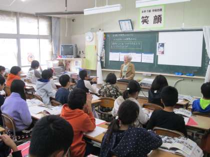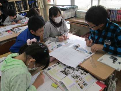 今日は,戦争中の人々の生活について学習しました。子供たちは,グループで課題を分担し,資料を活用しながら調べました。また,ゲストティーチャーとして戦争体験者の方から体験談を聞きました。