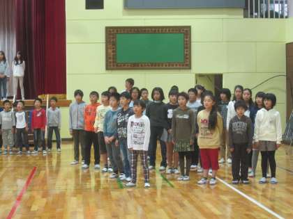 5年生の群読が最初なので力一杯「じびきあみ」を読みます。