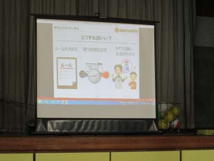 インターネット,携帯電話・スマートフォンは私たちの日常生活やビジネスに欠かせないとても便利なコミュニケーションツールとなりました。しかしながら,インターネットがもたらす恩恵は多い反面,「ネット依存」「ネットいじめ」「誘い出し・なりすまし」「ネット詐欺」等のトラブルも多発しています。今日は,インターネットの安心・安全利用に関する講話をしてもらいました。