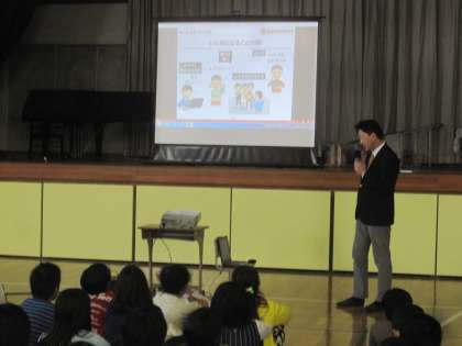 今日は情報モラルについて学習しました。講師の先生の話を聞いたり、ビデオを見たりして、ネットいじめは絶対にいけないこと、なりすましという恐ろしい危険があることなどを学びました。こわい。よく考えて行動したい。という感想が聞かれました。家でもよく話し合ってみてください。