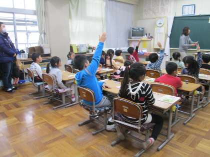 今日の道徳の授業は,「がっこうのようむしゅじさん」の資料を使って学習しました。雨の日,主人公しょうた君は登校すると,みんなが滑らないようにモップでふいてくれている用務主事の中村さんと会いました。喧嘩してしょんぼりしていたしょうた君は,中村さんに,「しょうたくん,どうしたの。」と声をかけられ,うれしくなりました。この教材から,日頃お世話になっている人に「ありがとう」と気持ちが伝えることができるように考えさせる授業でした。