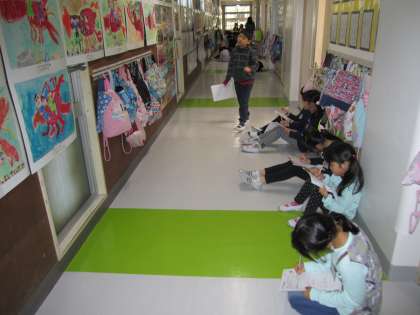 芸術祭の作品を鑑賞しました。1〜6年生までの作品を見回り,高学年の絵を見ると,完成度の高さにみんなビックリしていました。みんなも静かに見学することができ,素晴らしい態度で鑑賞することができました。