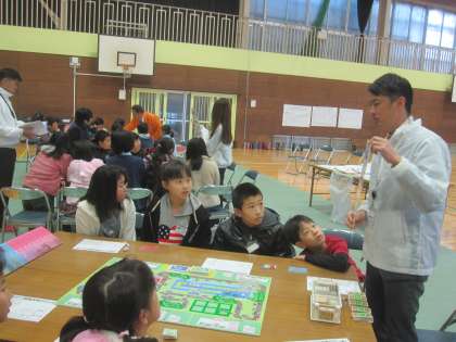 特に、ボードゲームはグループ対抗で盛り上がりました。すごろくで進みながら、エコを考えた開発や自動車販売、社会貢献度などの条件を満たしながら売り上げを伸ばしていきます。知恵を絞ってグループごとにがんばっていました。