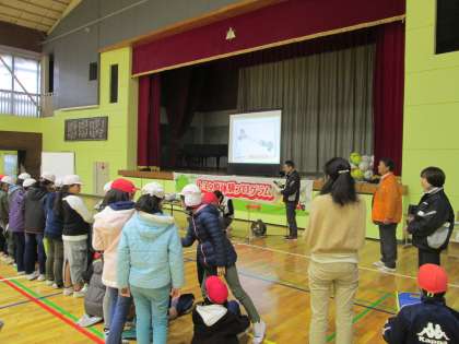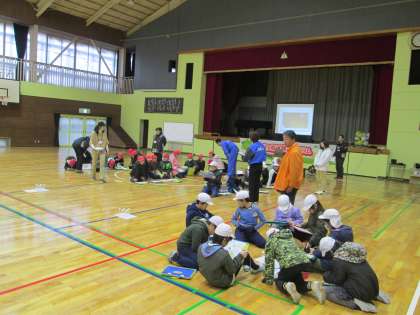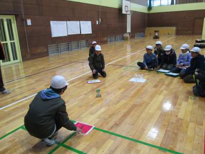3・4時間目に体育館で総合的な学習を行いました。今日は,「トヨタ原体験プログラム」を活用して,空気エンジンカー(模型)を使った実験をしました。理科の授業では,「空気の性質」について学習しましたが,体験プログラムを通して,車のエンジンのしくみや空気エンジンカーのパワーのすごさ,コントロールの大切さを学びました。
