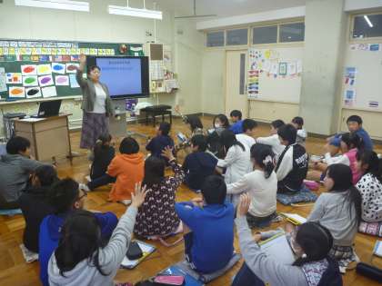 5時間目に講師の先生をお招きして,心の学習を行いました。テーマは【自分の好きを知ろう】好きな色,好きな食べ物,好きな○○をたくさん考えて,ワークシートに書きました。自分のことを好きになり,自分を大切にする。また,大切な自分は,友達からも大切にされなければならない。つまり,自分は,友達も大切にしなければならない。奥が深い学習でした。子供たちは,目を輝かせながら授業に参加していました。