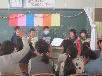 今日は2学期のお楽しみ会でした。劇やマジック,お笑いなどグループごとに楽しい発表をしました