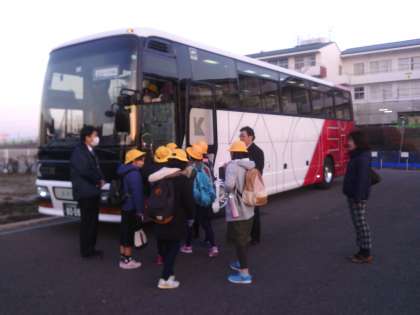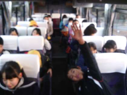 今日は、社会科の校外学習として国会議事堂と科学技術館を見学に行きます。バスに乗って、出発!