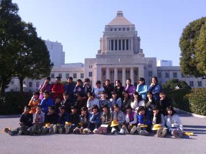 国会の参議院を見学です。見学後は、国会議事堂をバックに写真を撮りました。