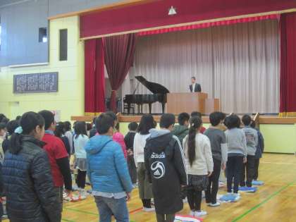 3学期始業の日。5年生は欠席が無く、全員元気に登校しました。久しぶりに会う友達もいて、冬休みのことなど楽しそうに話をしていました。