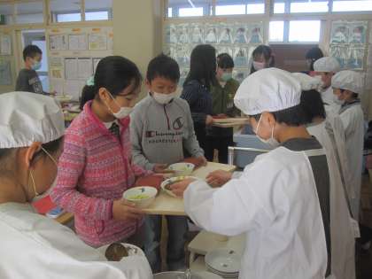 3学期最初の給食はカレーです。みんなでおいしくいただきました。