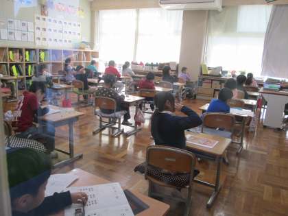 3年生から6年生は,茨城県の学力診断テストを行っています。1年生と2年生は,小中連携事業として,永山中学校区の先生方で国語,算数の基礎学力テストを作成し,実施しています。永山中学校区の子供たちがしっかり基礎学力が定着できるようにテストの分析を行い,今後の学習指導に役立てていきます。