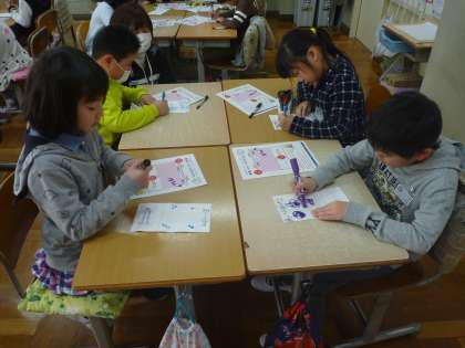 「ゆめあかり3.11〜続ける祈り,繋がる想い〜」の紙袋キャンドルメッセージを作りました。家族や友達のイラストを描いたり,メッセージを言葉で書いたりなど,紙袋にそれぞれの願いや想いをイラストやメッセージで描きました。