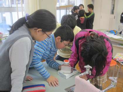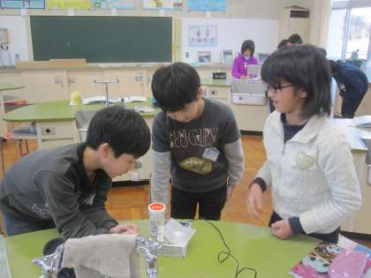 理科でもののとけ方の学習をしています。今日は水に食塩を溶かしました。