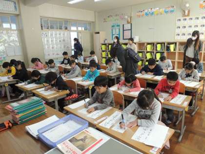 1年生にとっては,初めての「書き初め会」が行われました。