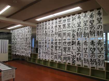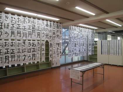 1月13日に体育館で行われた新春書き初めの作品を1階の多目的ホール(旧図書室)に,今日から1月24日(火)まで展示致します。子供たちが一生懸命心を込めて書いた作品をどうぞ見に来て下さい。お待ちしております。