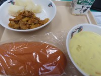 麦ごはん, 牛乳,鶏の唐揚げ,海藻サラダ,けんちん汁