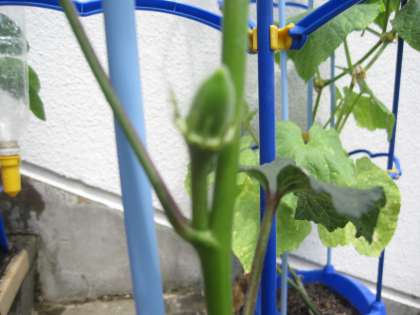 生活科で種から育てている野菜が、だんだん大きくなってきました。エダマメのさやが膨らんできたり、オクラの小さな実ができたりして、2年生のみんなは、熟すのを楽しみに待っています。収穫第1号はきゅうりでした。自分で育てた野菜は、より美味しく感じられると思います。