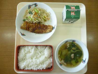今日の献立は,ごはん,あじの南蛮漬け,ビーフン炒め,トウガンのスープ でした。