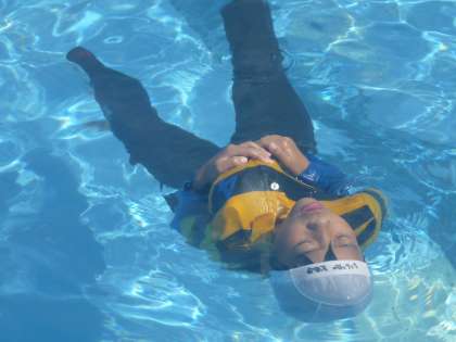 さらに,顔を付けないように泳いだり,ペットボトルをビート板代わりに泳いだり,