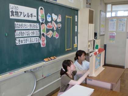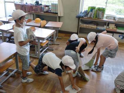 1年 食物アレルギーのお話&大掃除 公開日 2017/07/20 更新日 2017/07/20 1年生の様子 7月19日(水) 栄養士の先生と養護教諭から,食物アレルギーについての話を聞きました。好き嫌いとアレルギーは違うことや,アレルギーを引き起こす物を食べることの危険について学びました。あと2日で夏休み。今日は,教室の大掃除を行いました。机やいすの裏も丁寧に掃除して,夏休みの準備が整いました。