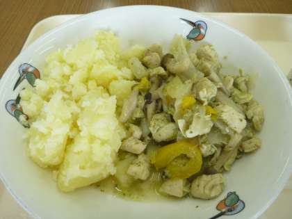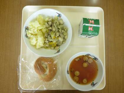 今日の献立は,こめパン,バジルソテー,こふきいも,ミネストローネ でした。