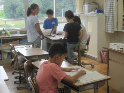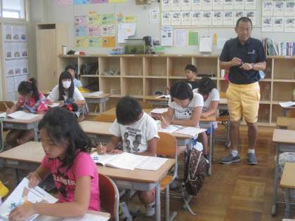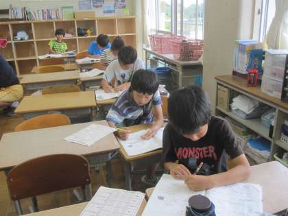 夏休みの学びの広場の4日目。5年生は人数が多いので,5年生と3年生の教室に分かれて学習しています。計算の復習や応用問題に真剣に取り組んでいます。明日が最終日になります。最後にまとめのテストとアンケートを行って終わりになります。