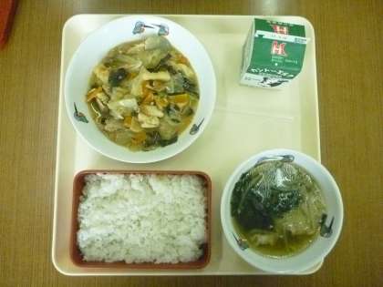 今日の献立は,むぎごはん,八宝菜,ワンタンスープ です。