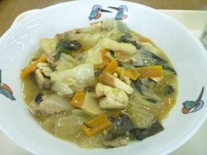 八宝菜は,オイスターソースのきいた本格的な味でした。具材もフレッシュで,プリプリした食感のイカやエビがたくさんはいいていました。