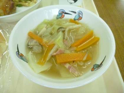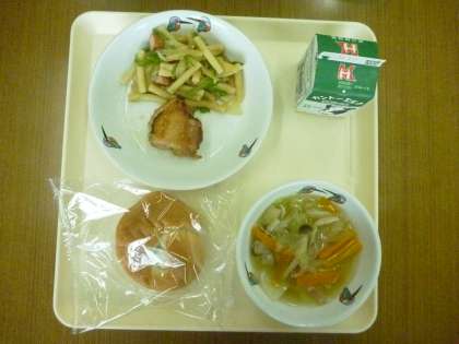 今日の献立は,こめパン,とりにくのママレード焼き,マカロニソテー,やさいスープ でした。