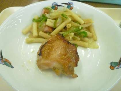 ママレード焼き?と聞いてどんなおかずなんだろうと思いました。甘いのかなと思ったのですが,さっぱりとした味で風味もよくおいしかったです。 マカロニソテーもニンニクのきいた炒め物で,ピーマンの味がアクセントとなりとてもおいしかったです。