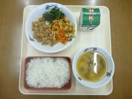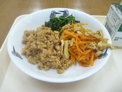 三色そぼろは,とても味よくまとまっていて,ごはんに混ぜて食べている児童が多かったです。おいしそうにみんなパクパク。本当においしそうでした。