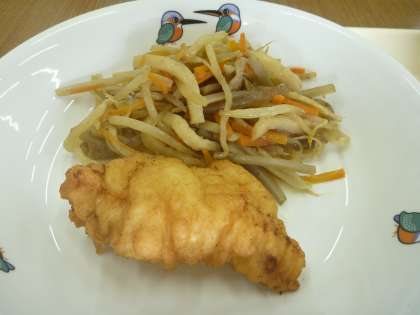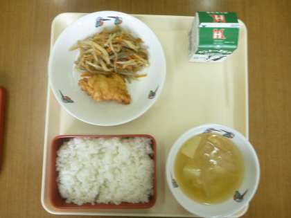 今日の献立は,長崎天ぷら,浦上そぼろ,みそ汁 でした。