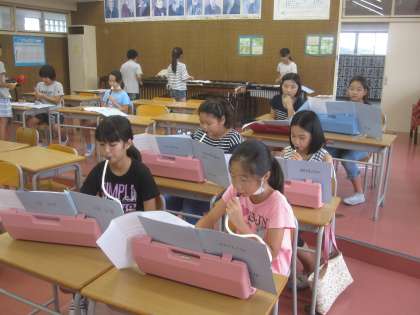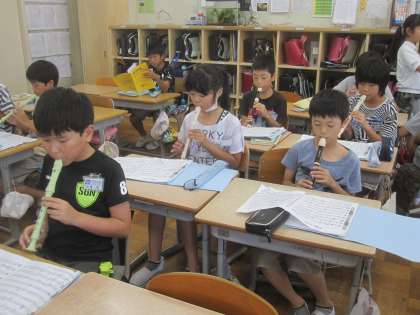 音楽界で発表する「アフリカンシンフォニー」パートごとの休み時間。少しずつ覚えていこうということでがんばっています。