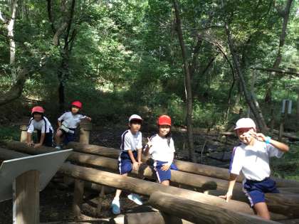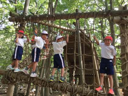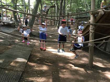 グループ毎にアスレチックで楽しんでいます。