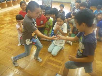 じゃんけん列車をやりました。英語でやるといつもよりも盛り上がります。