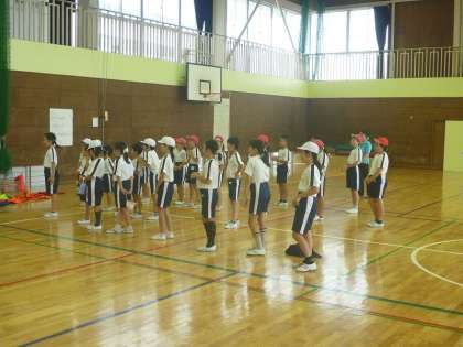4年生は,2時間目は算数で「わり算の筆算」の復習プリントを,3時間目には体育で「ドッジボール,しっぽとり鬼」を永山中学校生と一緒に活動しました。