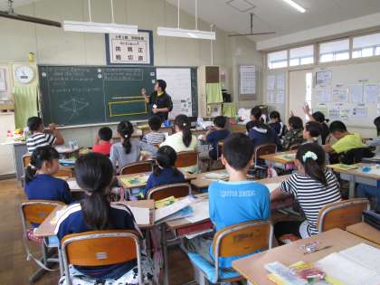 算数の授業では,「ひしがた」について学習しています。今日は,向かい合っている辺と角度がどのようになっているかを調べました。