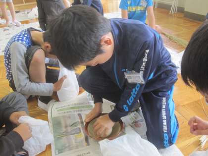 5年生 もみすりをしました 公開日 2017/09/29 更新日 2017/09/29 5年生の様子 9月28日(木) すり鉢を使って収穫した籾をすりました。なかなか力がいる作業で、お米を作るって大変だなと思わずつぶやいていた子もいました。1時間では終わらず、来週もやり、玄米を炊いて食べたいと思います。