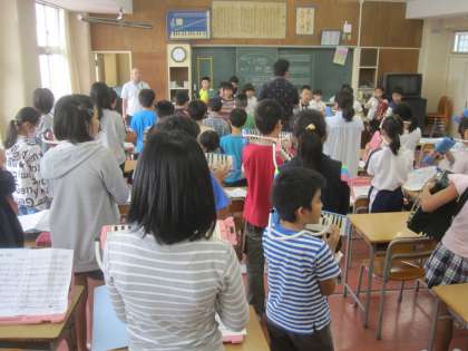 今日から本格的に、4,5年生合同で音楽会に向けての練習が始まりました。