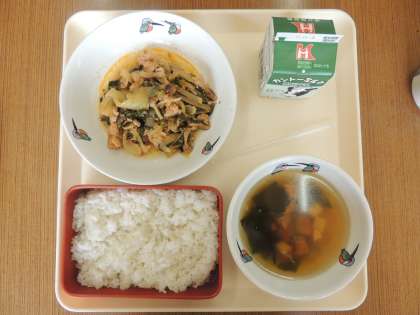 今日の献立は,むぎごはん,プルコギ,わかめスープ でした。