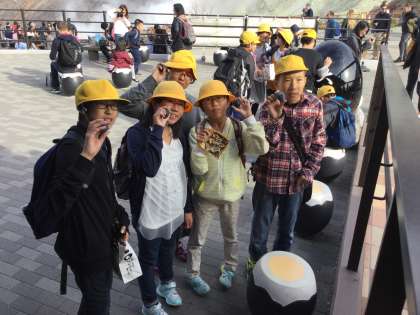 大涌谷の黒タマゴが大人気。 一つ食べると命が延びる。と言う効果かな?購入するのにも行列です。