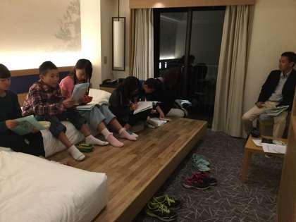 班長会議の時間です。今日の1日の反省をしています。
