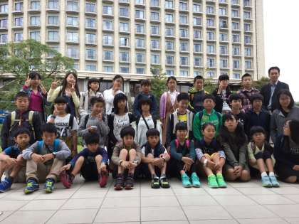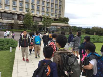 ホテルをバックに集合写真を撮りました。これから鎌倉に向って出発です。
