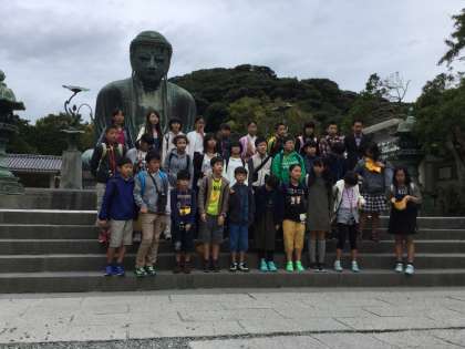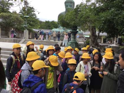高徳院に到着しました。大仏をバックに集合写真をとり、これから鎌倉自由散策が始まります。みんな気を付けて、見学してきましょう。