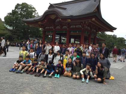 鶴岡八幡宮で最後の集合写真です。雨に降られず、楽しい1日でした。すべての活動が終えバスに乗って学校に戻ります。