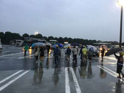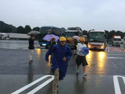 守谷サービスエリアに到着しました。やっと、高速道路も順調に走れるようになりました。もう少しで学校に到着します。