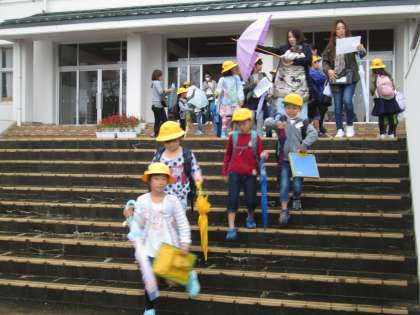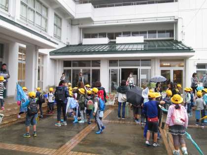 今日は,生活科の学習として町探検を行います。グループに分かれて,学区の中のお店を調べます。たくさんの保護者の皆様に引率のお手伝いをしていただき,ありがとうございます。