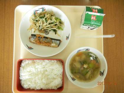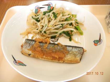 今日の献立は,ごはん,サンマのおろしがけ,からしあえ,ごまじる でした。